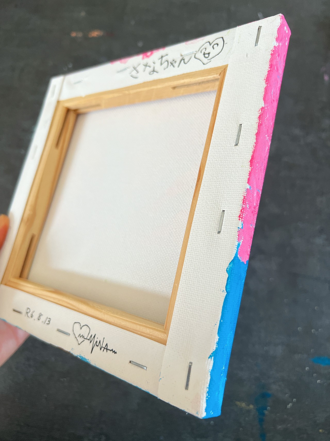 (ほこりや汚れから絵を守るためツヤありのニスを塗っています。)