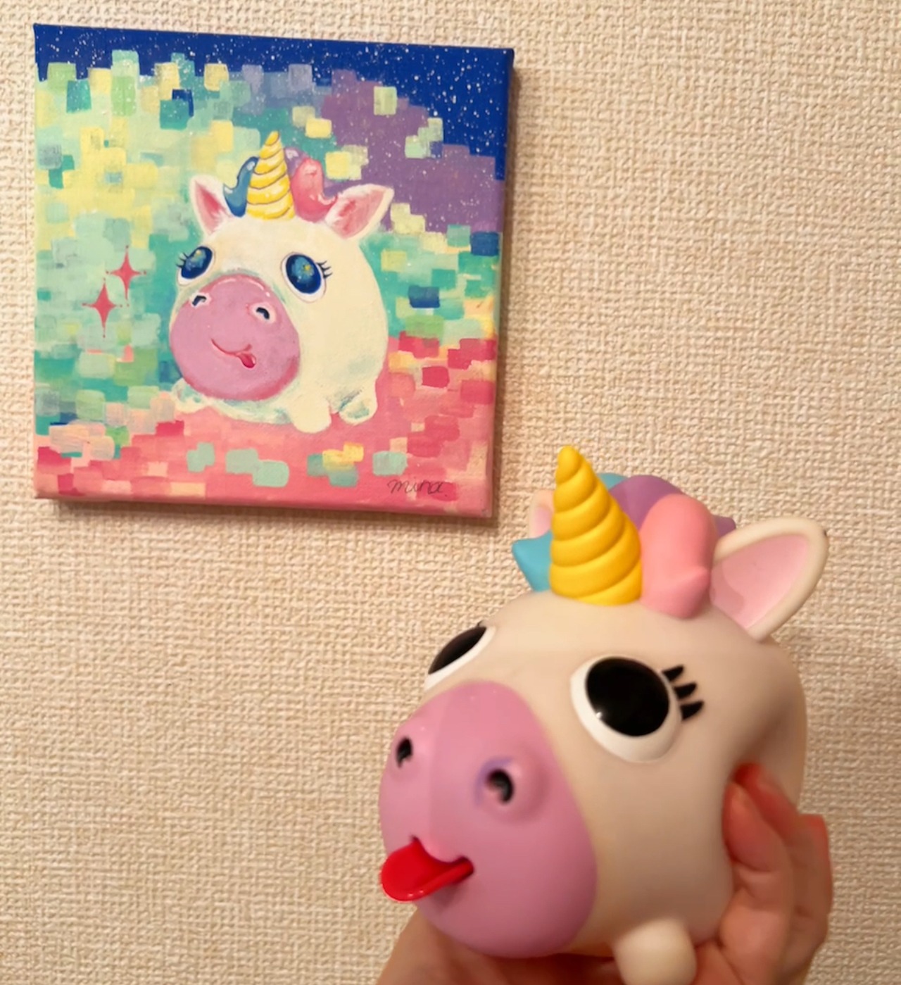 初めて夜の街に飛び出したおもちゃのユニコーンをイメージして描きました。